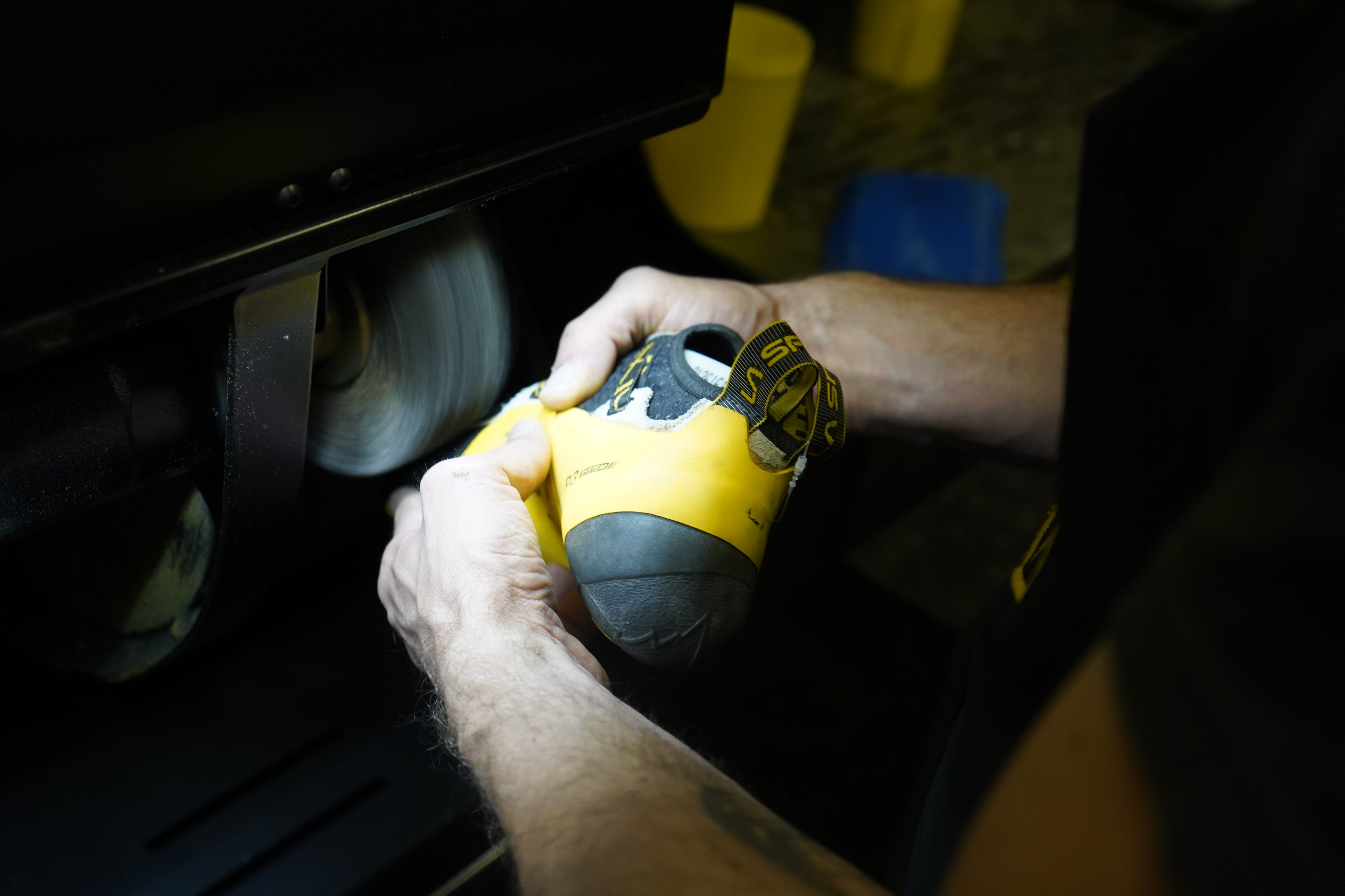 Utilizamos los mismos materiales, maquinarias y procesos que se usan durante la fabricación de los pies de gatos, nuestros resoladores son formados en La Sportiva Italia para garantizar el cuidado del proceso artesanal que permite conseguir un resolado de inigualable calidad y acabado de fábrica.